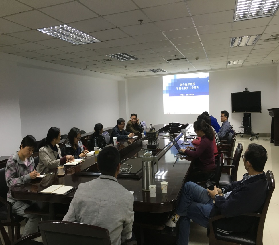 學(xué)科咨詢部主任馬建霞介紹了學(xué)科咨詢服務(wù)部的服務(wù)布局、團(tuán)隊(duì)建設(shè)、面向研究所率先行動(dòng)、分類定位改革和院重點(diǎn)實(shí)驗(yàn)室評(píng)估所開(kāi)展的學(xué)科發(fā)展態(tài)勢(shì)分析和科研創(chuàng)新影響力評(píng)價(jià)工作等重點(diǎn)工作。責(zé)任學(xué)科館員陳松叢匯報(bào)了近年來(lái)面向煙臺(tái)海岸帶研究所開(kāi)展的學(xué)科信息服務(wù)。
