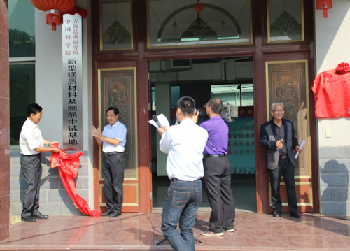 張金初、段東平、支洋波和肖學(xué)英代表雙方進(jìn)行了“新型鎂質(zhì)膠凝材料工程技術(shù)聯(lián)合研究中心”和“新型鎂質(zhì)材料及制品中試基地”的揭牌。揭牌儀式結(jié)束后,來賓參觀了板材生產(chǎn)線和新型海工鎂水泥試驗(yàn)場(chǎng)地。