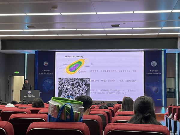 25日下午,西北高原所副研究員邢睿為前來參加活動(dòng)的五四小學(xué)師生作了題為“微生物探秘”的講座。講座從科普的角度講解了微生物的概念及他們的重要生態(tài)功能;從伴隨人類社會(huì)發(fā)展歷程的角度,闡述微生物在人類發(fā)展過程中起到的的重要作用;隨后介紹了青海省尤其是祁連山國家公園大型真菌的分布、組成及野外真菌識(shí)別的基本知識(shí)。隨后,邢睿還帶領(lǐng)五四小學(xué)師生參觀學(xué)習(xí)了青藏高原生物標(biāo)本館。
