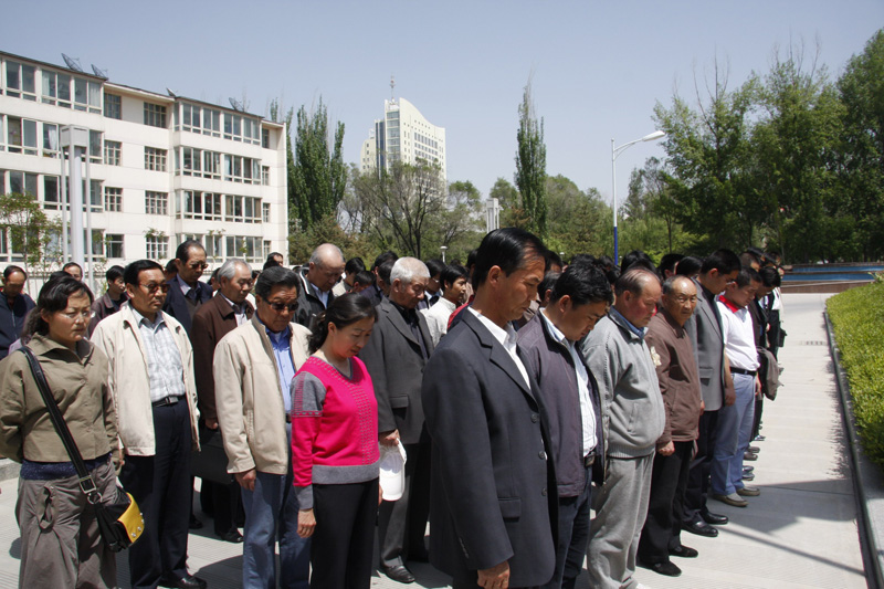 手足同心,兄弟相親。為了表達全國各族人民對汶川地震遇難同胞地深切哀悼,國務院決定208年5月19日下午2點28分全國人民默哀三分鐘。伴隨著防空警報聲音拉響,汽車、火車鳴笛聲持續(xù)了三分鐘,西高所職工、研究生、離退休老同志集中在一起向災區(qū)罹難者低頭默哀。