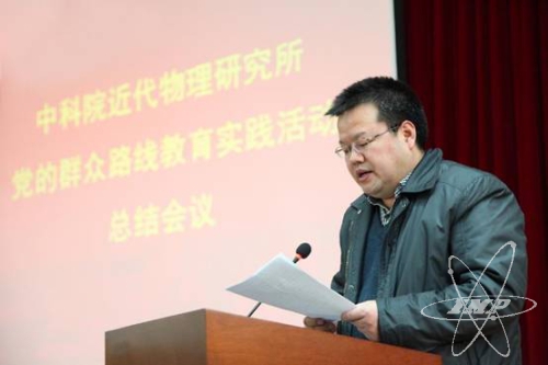 1月24日,近代物理所召開黨的群眾路線教育實踐活動整改落實通報暨總結(jié)會。所長肖國青主持會議,黨委書記趙紅衛(wèi)做整改落實情況通報和總結(jié)報告,中科院黨的群眾路線教育實踐活動第五督導組成員、蘭州分院副院長楊青春出席會議作點評。